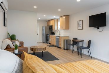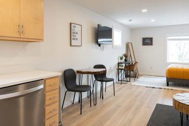 Once a small-town car shop, now a beautifully restored and cozy getaway. Sleeps up to 4 with a comfy bed & a couple convertible beds. Relax in the spacious living room with two plush L-shaped couches, a fireplace, and TV. Cook in the full kitchen, get work done at the desk, & laundry in unit. Every detail is brand new, warm, welcoming, and full of small-town charm. Right Across the Street is the Famous Dew Drop Inn & Kozy Kitchen. 5 Minutes away from Baetje Farms and The Artisan Wedding Venue.